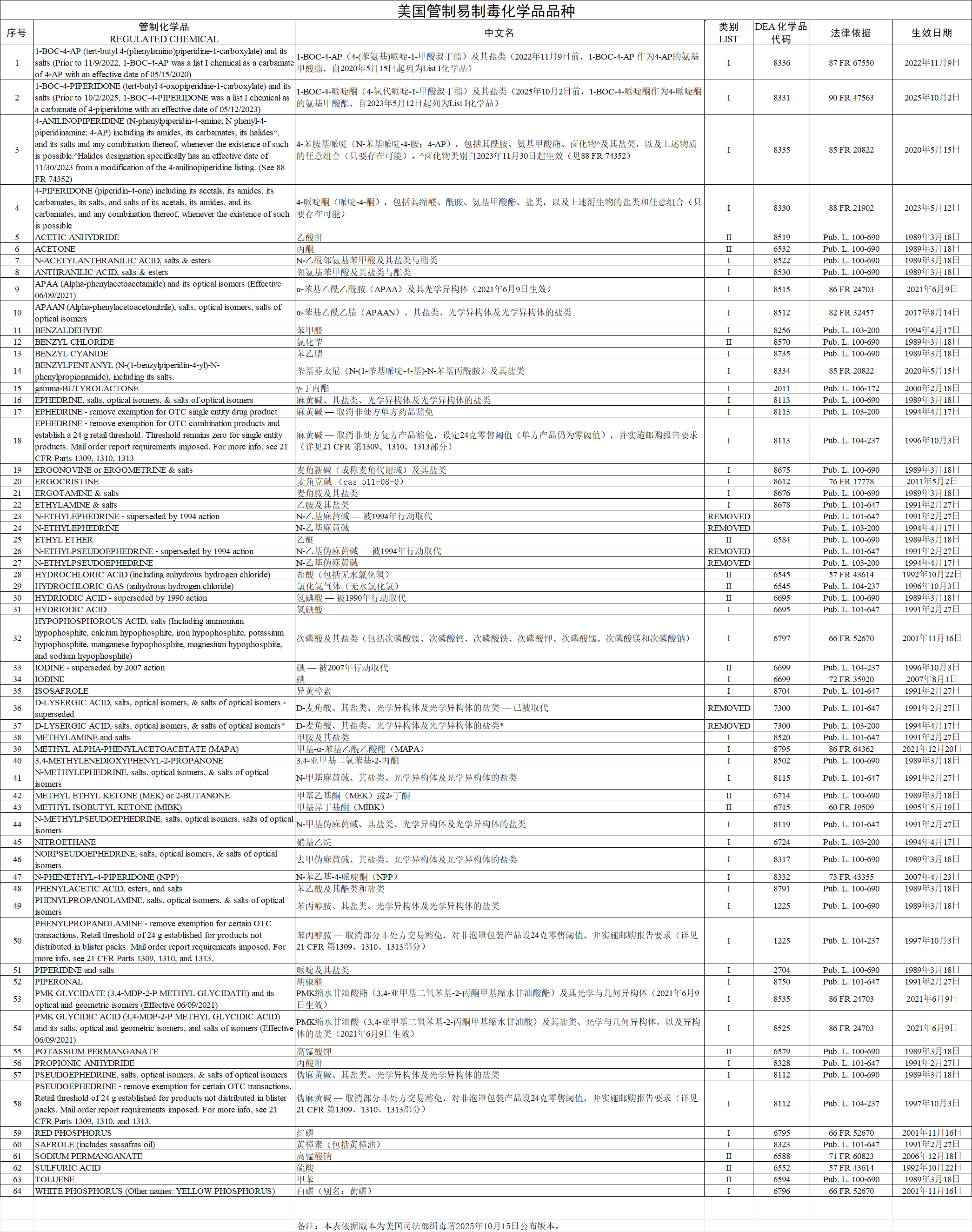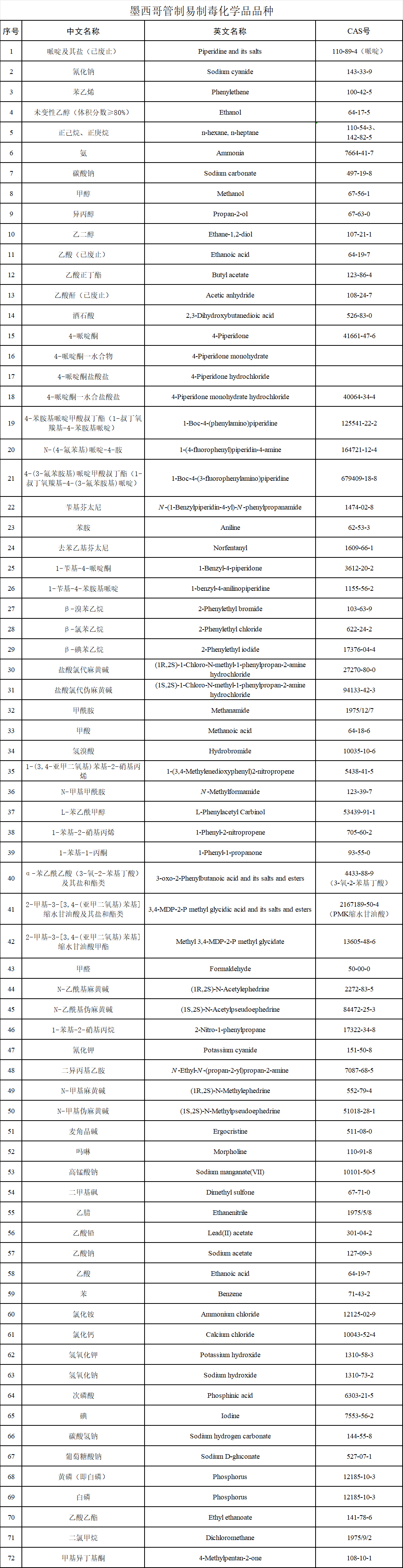 附件5-美、墨、欧盟管制易制毒化学品品种